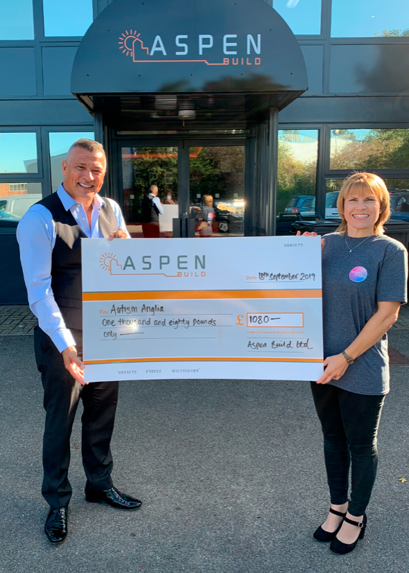 The day was enjoyed by all and trophies were given out at dinner for the winners as well as the losers! The event raised £540 in total from generous donations from all attendees of the event. Aspen Build matched the total raised and a cheque for a donation of £1,080 was presented to Autism Anglia.